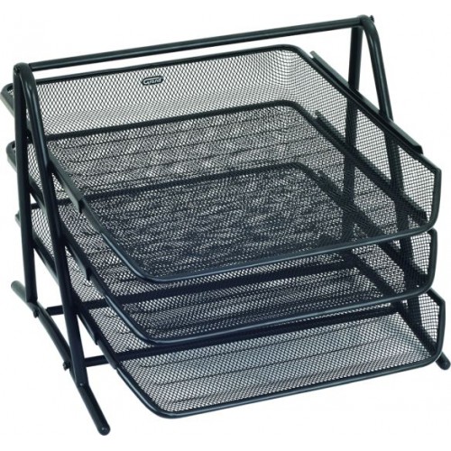 Metalowa półka na dokumenty wykonana z siatki lakierowanej na czarno, charakteryzuje się wysoka jakością wykonania oraz trwałością, moduł składa się z 3 półek, wymiary: 270x350x295 [mm], kod EAN: 5903364207298, jednostka sprzedaży: 1 szt.